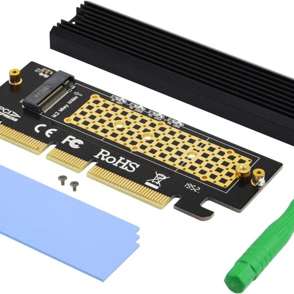 × ADWITS PCI Express 3.0 4x 8x 16x to M.2 NVMe and AHCI SSD Adapter Card with Heat Sink, Bracket-free and Compatible with Samsung 960 970 EVO PRO WD Black and More 11.12$